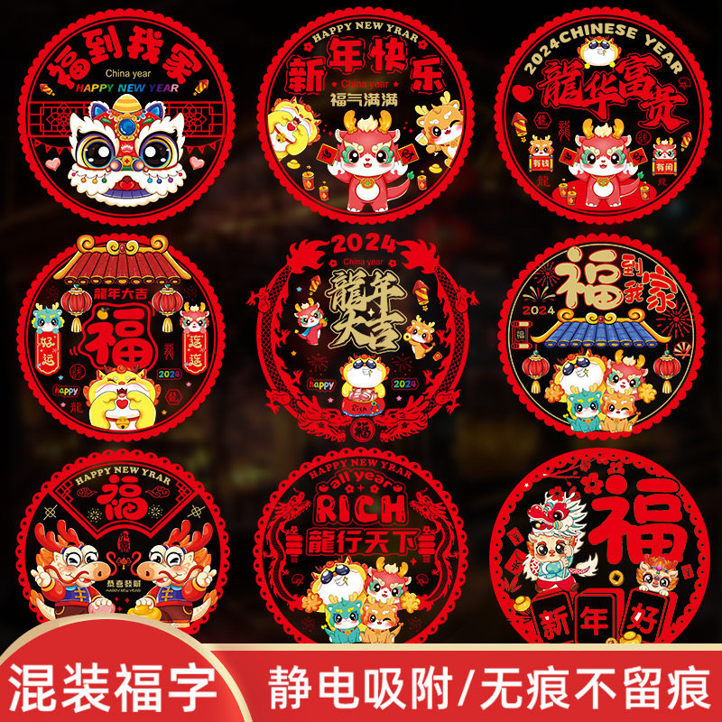 2024新年龙年福字窗花春节过年装饰玻璃贴纸静电窗贴生肖门贴年画