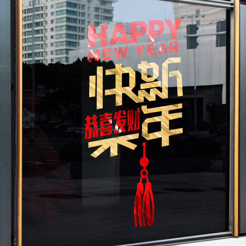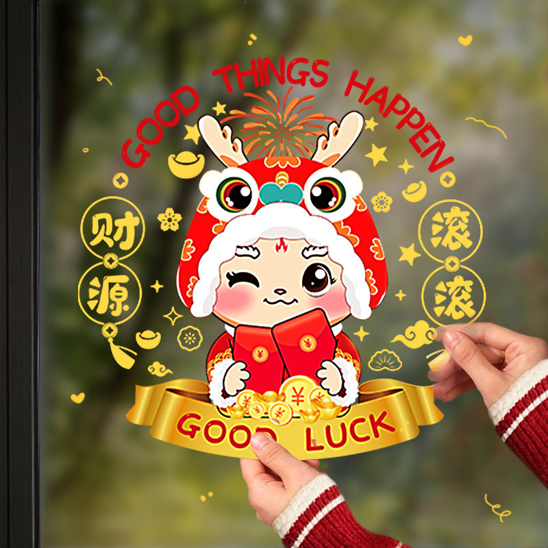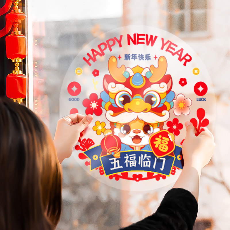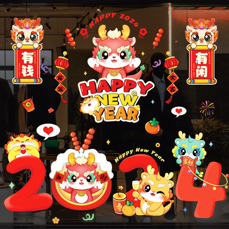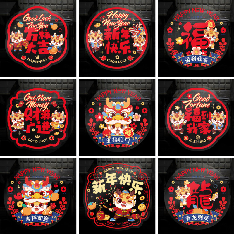 2024春节橱窗新年静电贴龙年窗花贴福字门贴画玻璃贴过年装饰布置