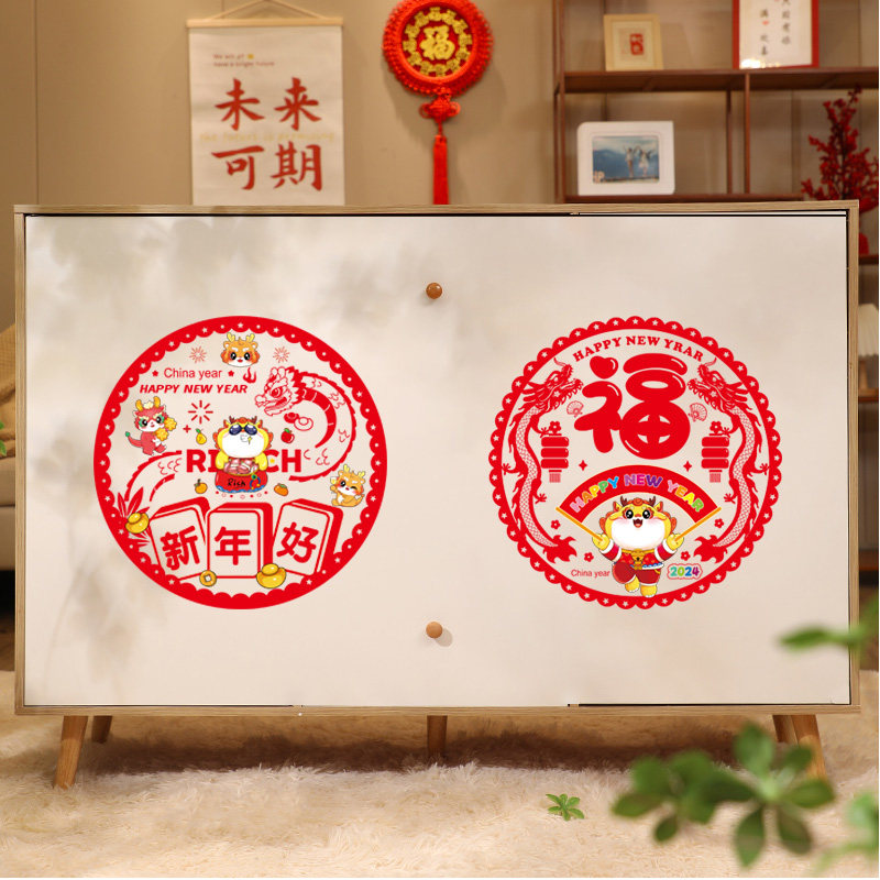 2024新款龙年新年窗花静电贴福字门贴玻璃贴剪纸过年春节装饰用品