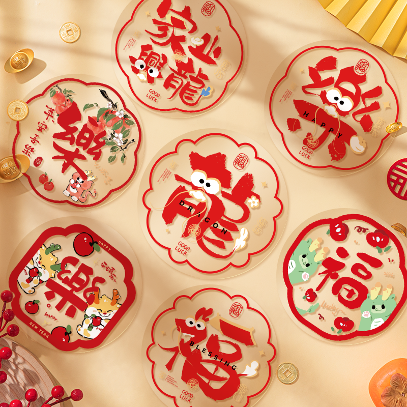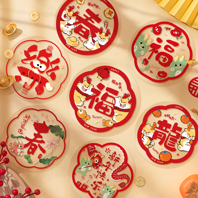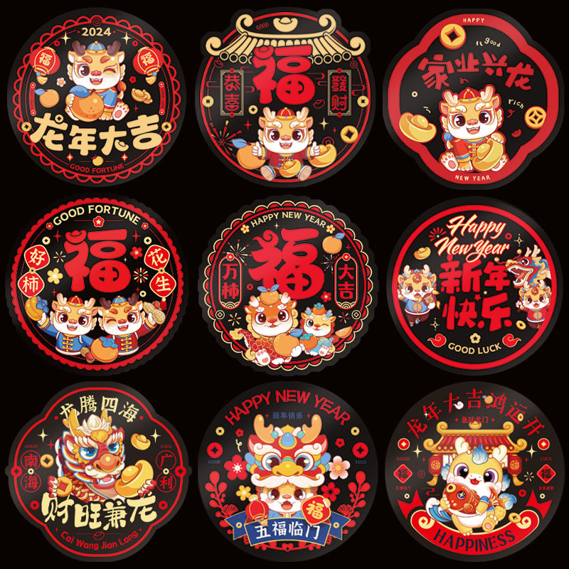 2024龙年新款新年福字帖春节静电贴窗花玻璃贴剪纸门贴画装饰用品