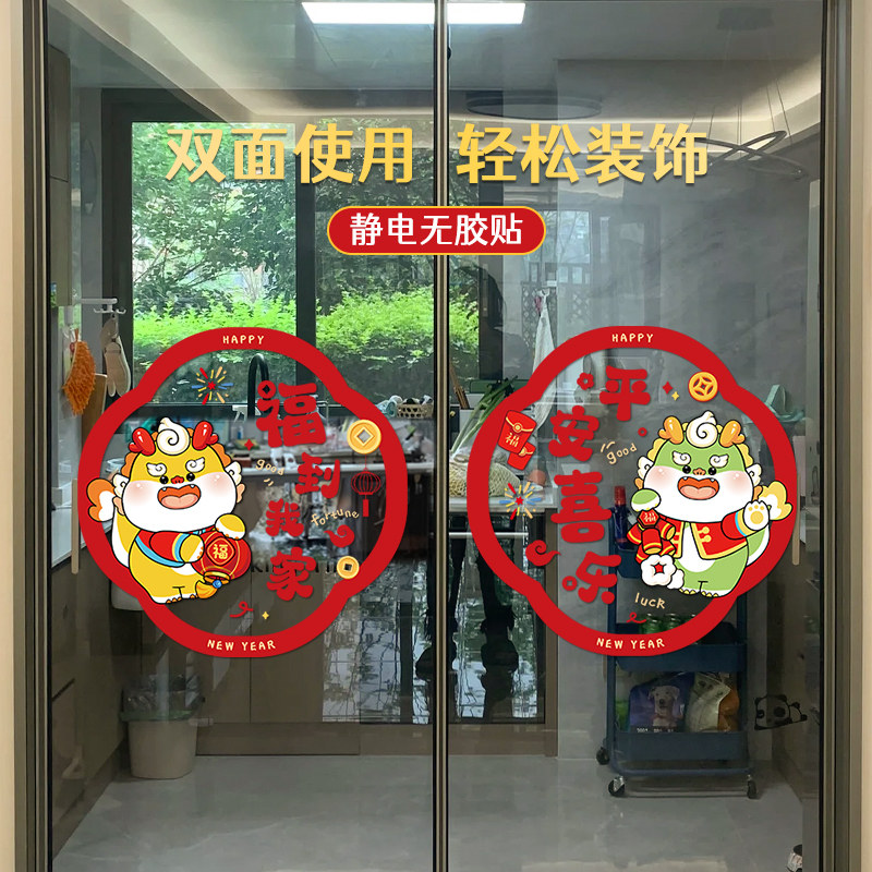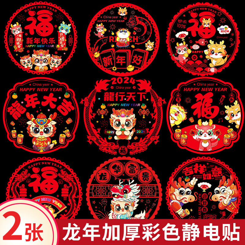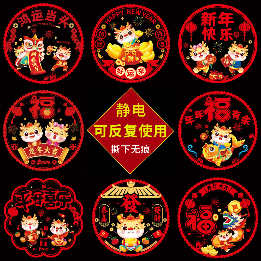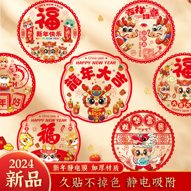 2024龙年装饰窗花元旦福字门贴窗玻璃静电贴新年过年春节新款贴纸