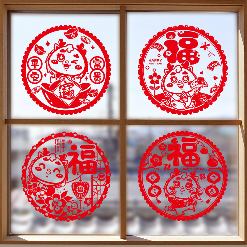 2024春节新款装饰新年龙年福字窗花玻璃贴剪纸过年窗户静电贴纸