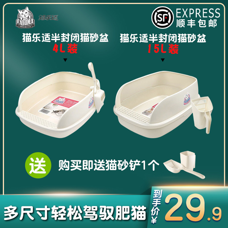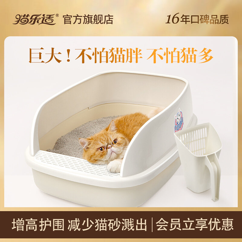 猫乐适半封闭猫砂盆防溅防臭易清洗大容量猫厕所成幼猫通用开放式