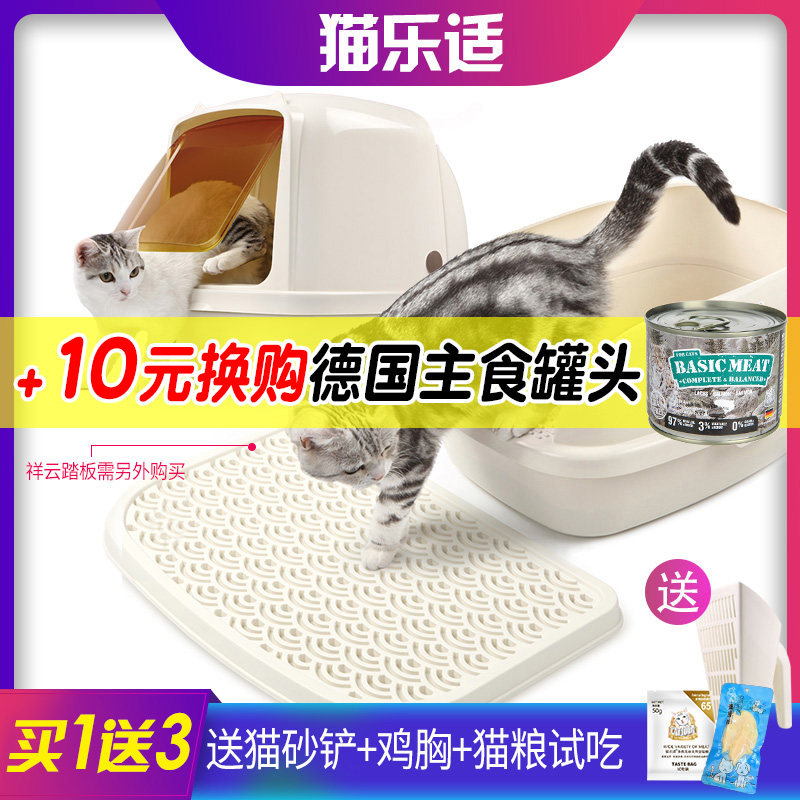 定制猫乐适猫砂盆大号特大号半封闭防溅猫砂盆猫厕所搭配脚垫踏板