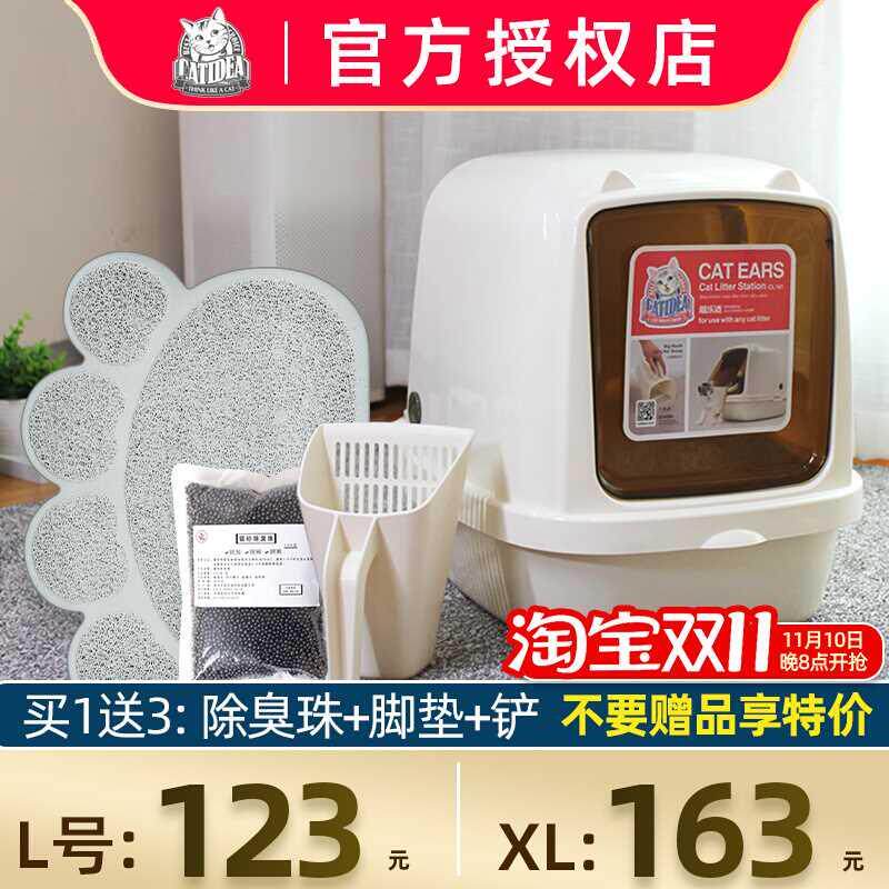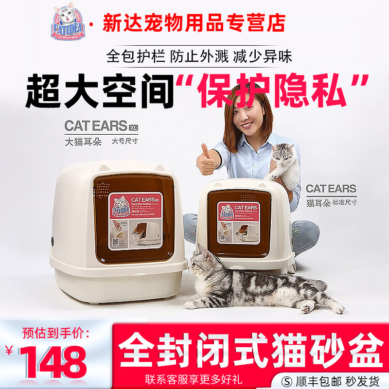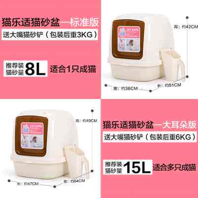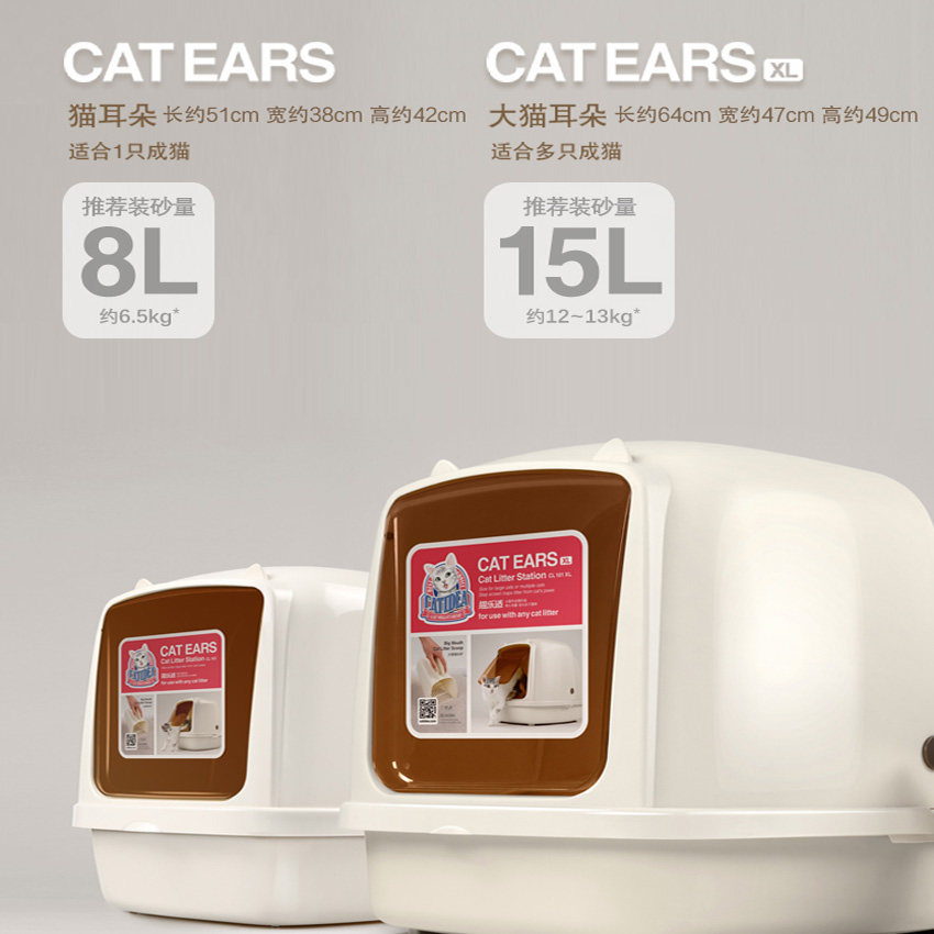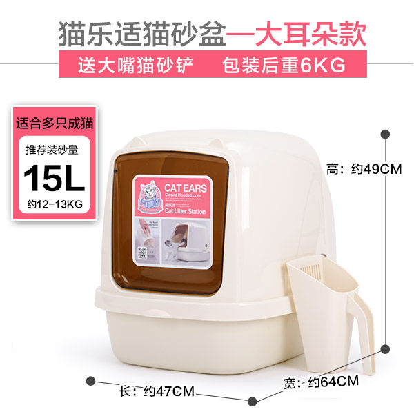定制猫咪用品猫乐适 猫耳朵全封闭猫砂盆8L特大号15L猫厕所除臭防