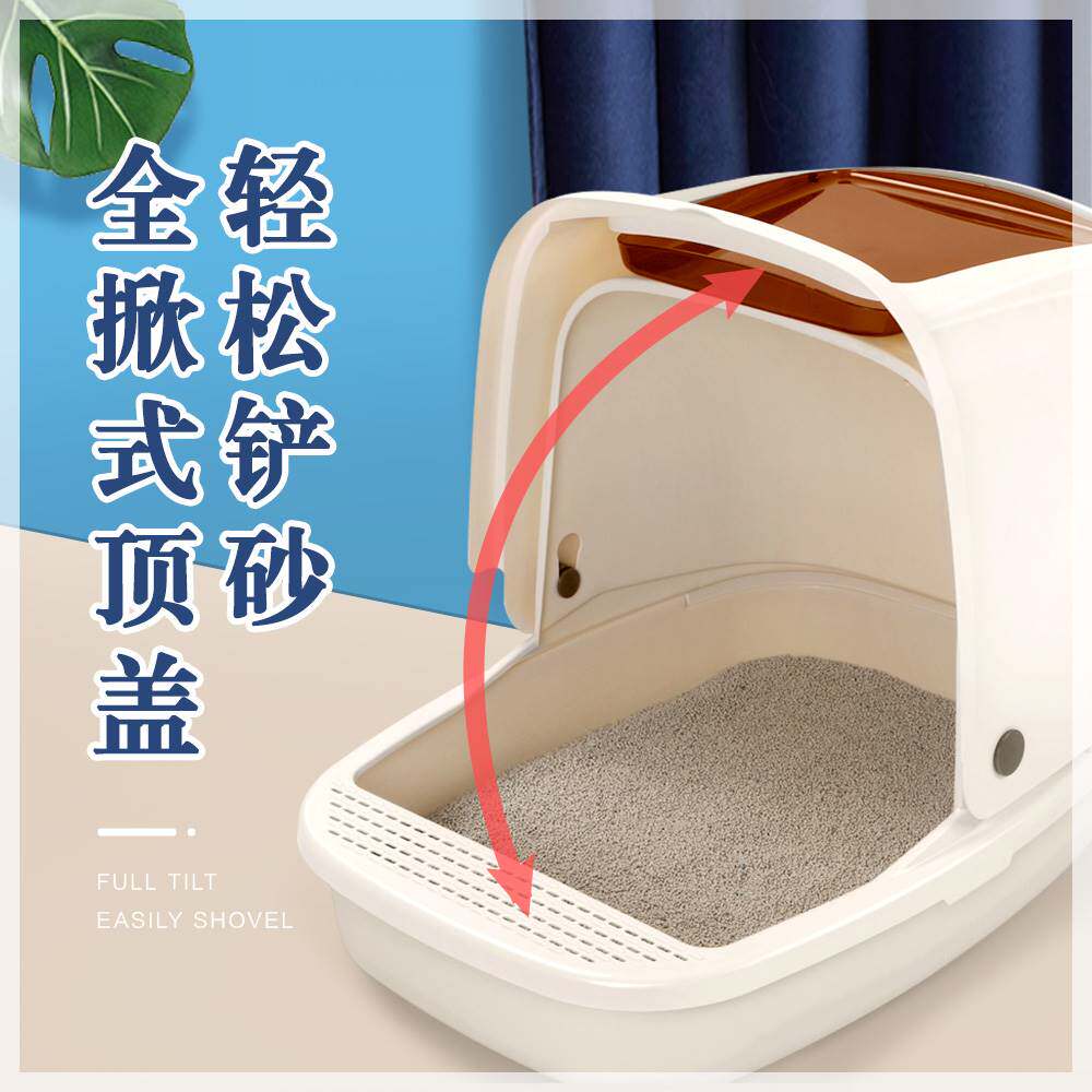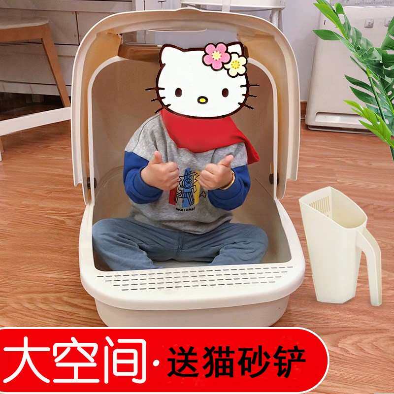 猫乐适猫砂盆特大号全封闭猫砂盘猫盆拉屎防外溅除臭半封闭猫厕所