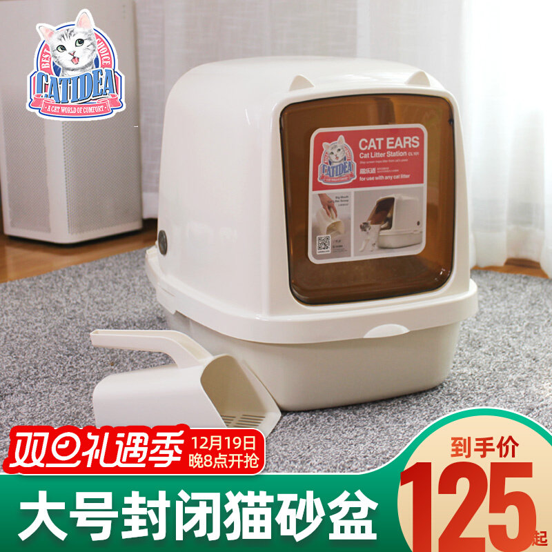 猫乐适猫砂盆猫耳朵猫厕所防外溅全封闭式超大号猫砂盆