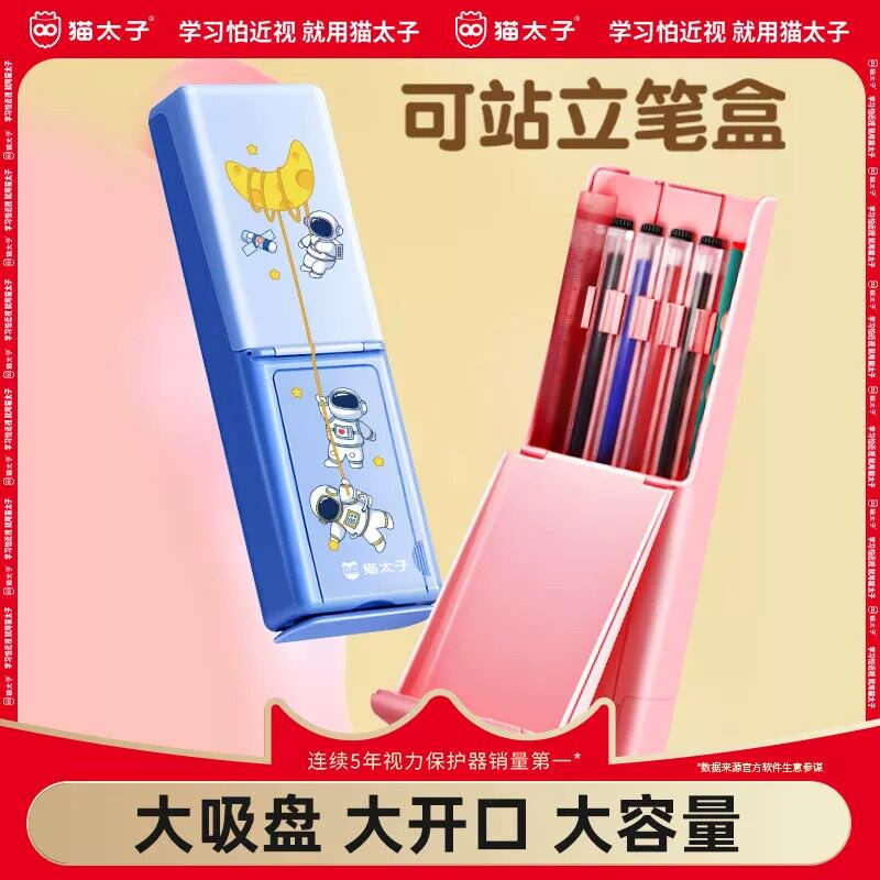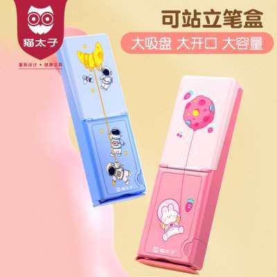 猫太子自律打卡笔盒小学生双层计划表笔袋铅笔盒双层多功能文具盒