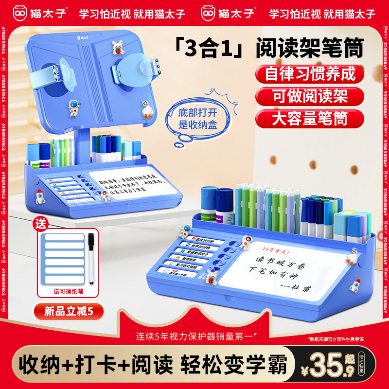 猫太子三维正姿台学生防驼背矫正器看书架套装儿童写字台书写支架