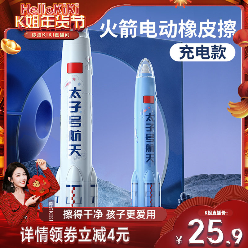 【k姐推荐】猫太子火箭电动橡皮擦小学生专用自动橡皮像创意卡通儿童干净无屑不留痕学生一年级学习文具用品