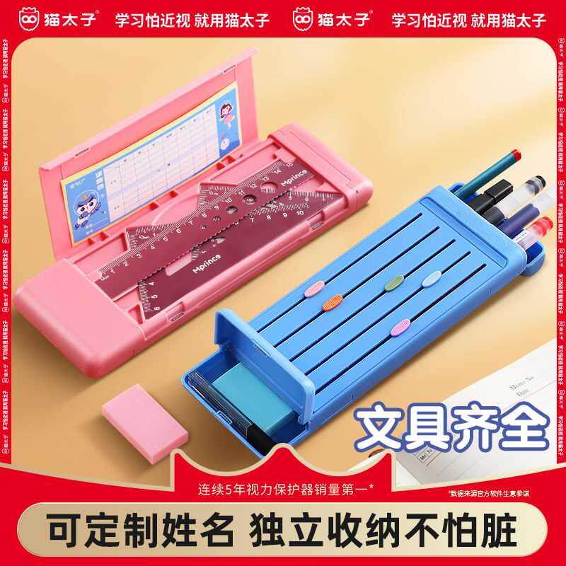 猫太子小学生多功能文具盒儿童幼儿园笔盒铅笔盒男女生带尺子橡皮