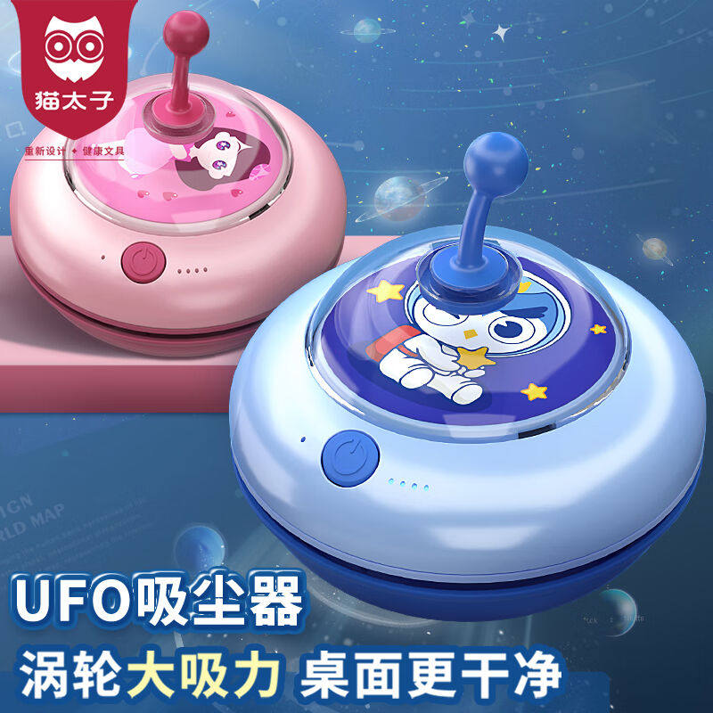 猫太子桌面吸尘器大吸力学生电动吸橡皮擦屑机登月号书桌上清洁器橡皮灰铅笔屑自动清理神器儿童文具学习用品