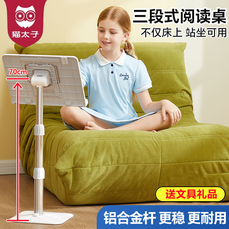 猫太子双层铝合金阅读架多功能看书支架神器读书架子可升降床上儿童阅读书架小学生晨读桌面绘本夹书架固定器