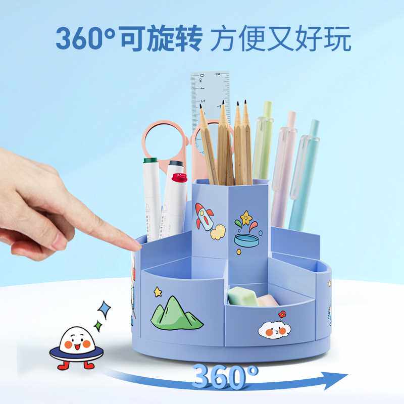猫太子360度自律打卡器旋转笔筒大容量学生桌面多功能收纳盒笔盒斜插式笔筒儿童男女孩文具笔桶创意可爱寒假