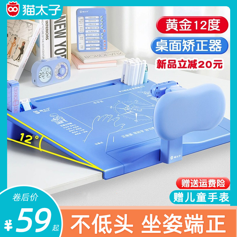 猫太子中小学生桌面正姿矫正器套装儿童视力坐姿矫正器学习读书台