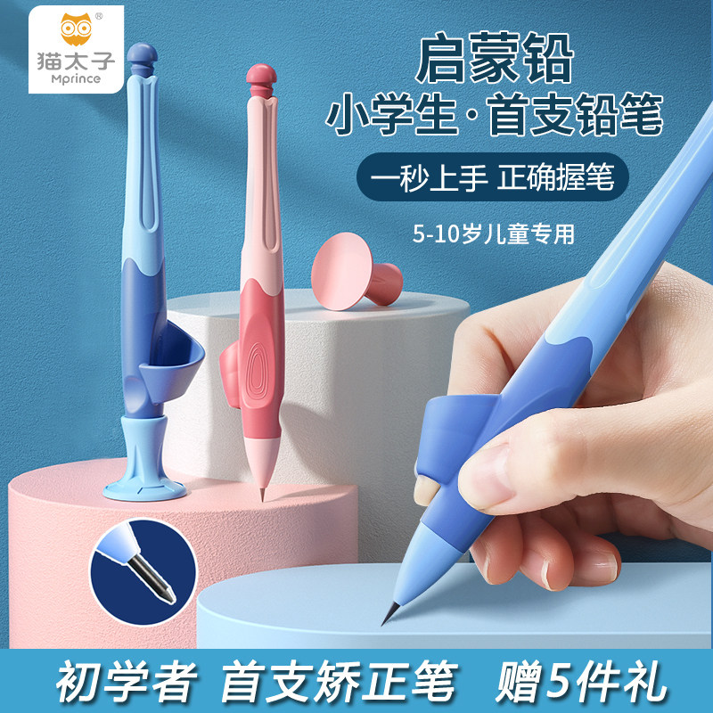 猫太子爱握自动铅笔小学生专用一年级儿童文具写字矫正粗芯握笔器无铅毒幼儿园初学者二年级学生练字学习用品