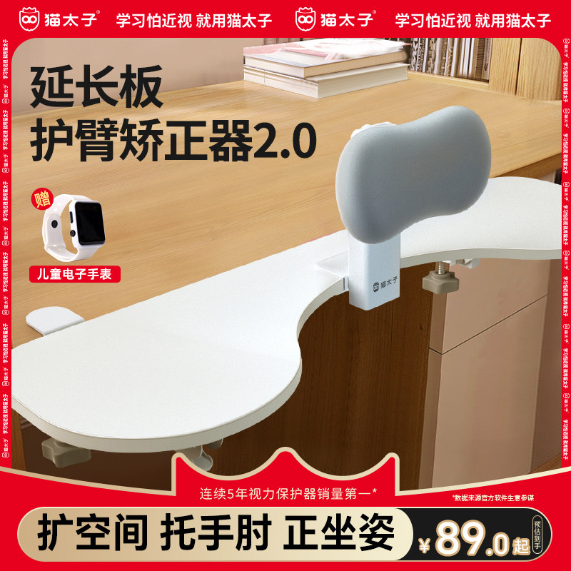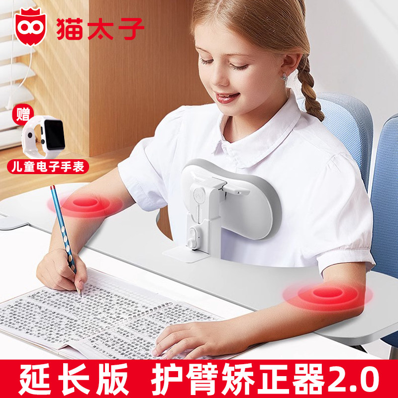 猫太子奶油皮坐姿矫正器护臂桌面延长板儿童写字防近视纠正神器小学生带肘托视力保护仪防低头防驼背学习支架