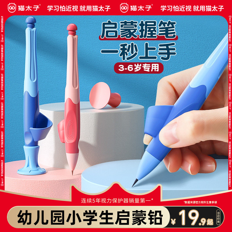 猫太子爱握握笔器幼儿园初学者小学生铅笔控笔训练宝宝写字胖胖矫正器笔套儿童纠正握笔拿笔姿势神器HB