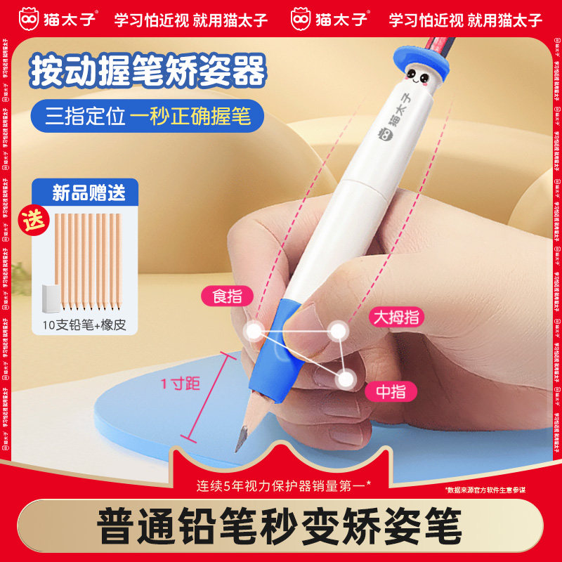 猫太子坐姿写字矫正器视力保护器护眼防近视书桌防低头防驼背神器