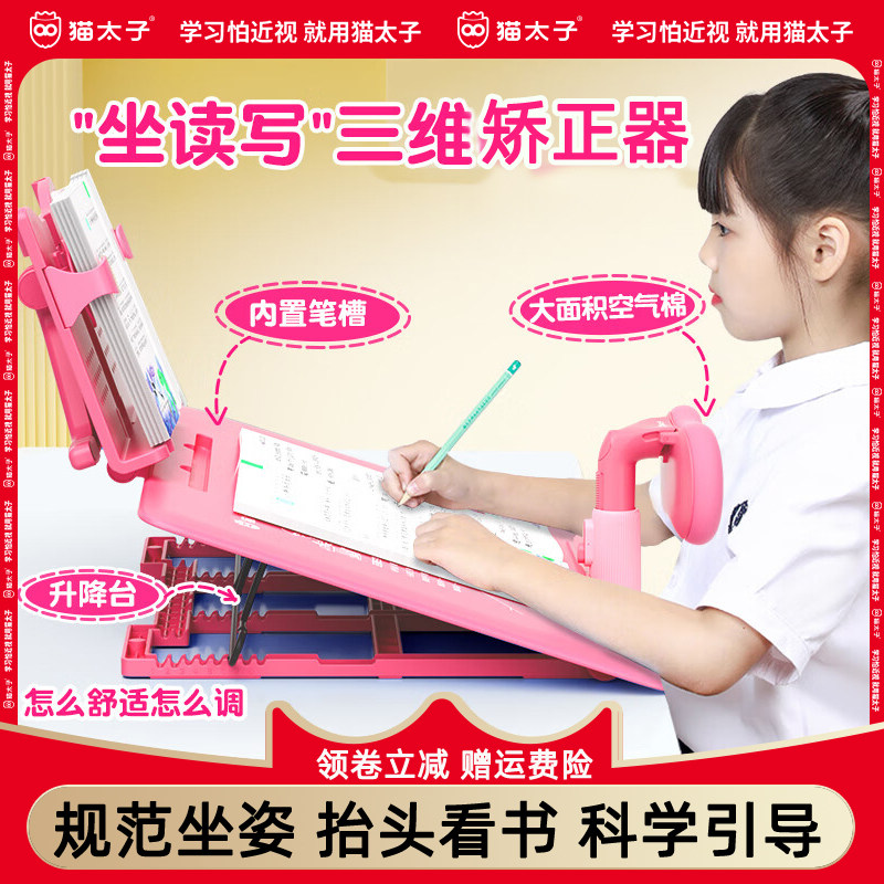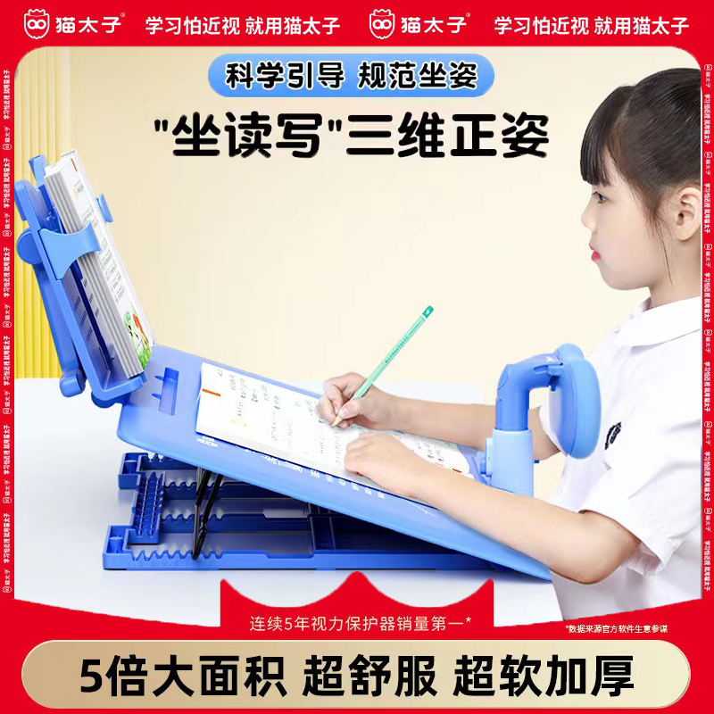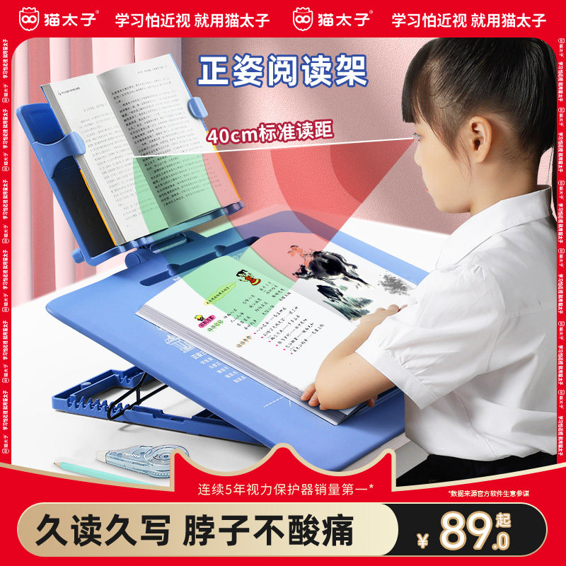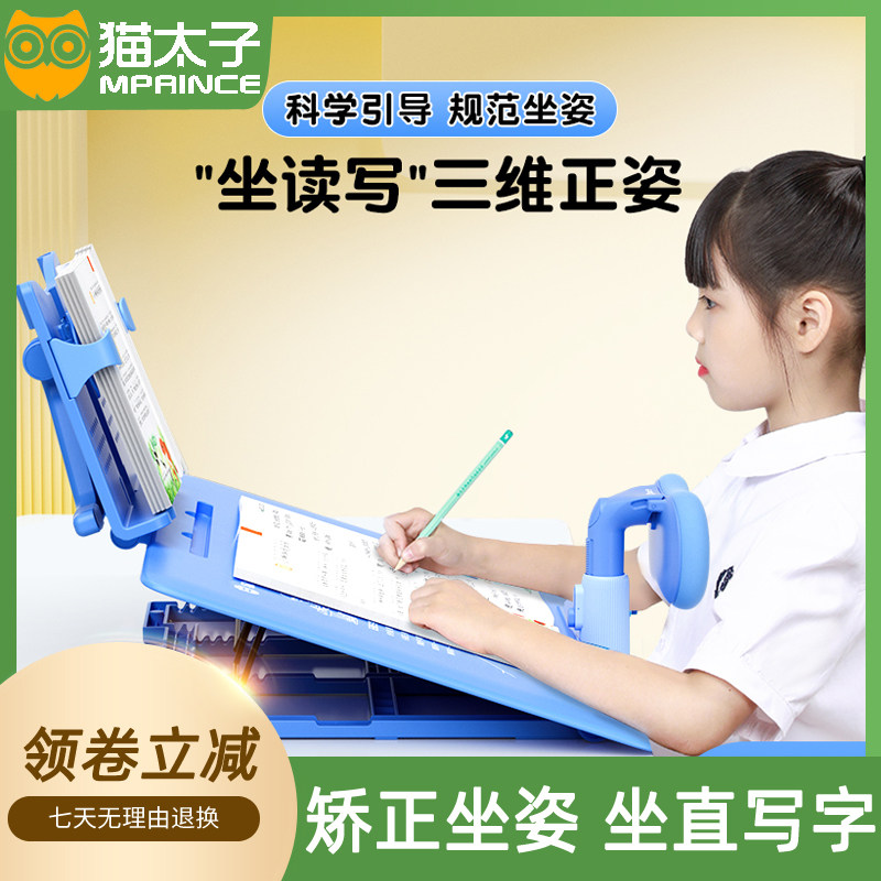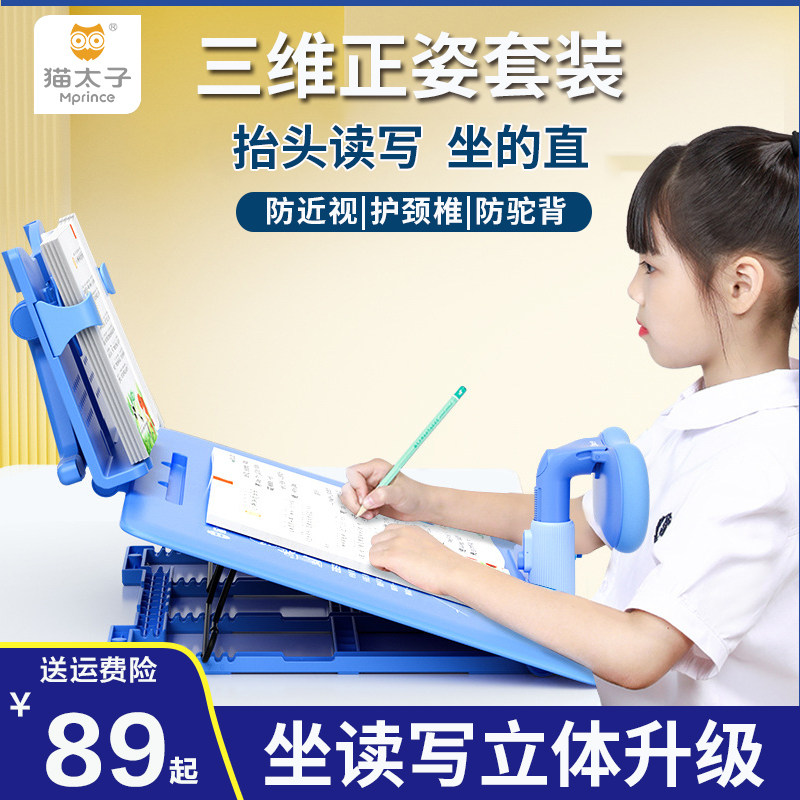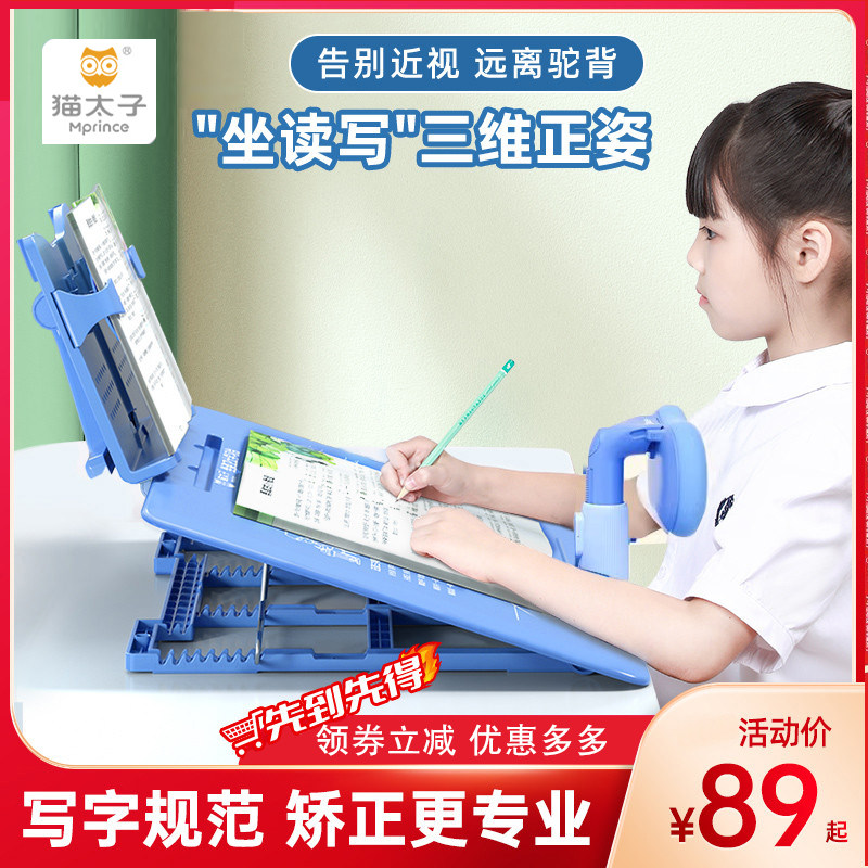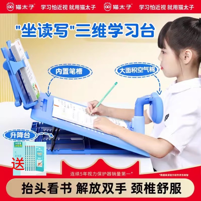 猫太子三维阅读架坐姿矫正器儿童小学生桌面看书书架读书写字支架