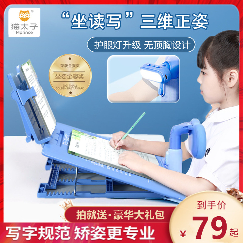 猫太子抗菌学生写字姿势矫正架儿童桌面防驼背近视坐姿矫正器智能