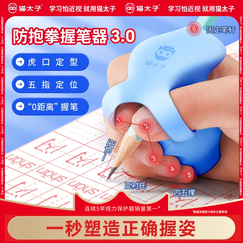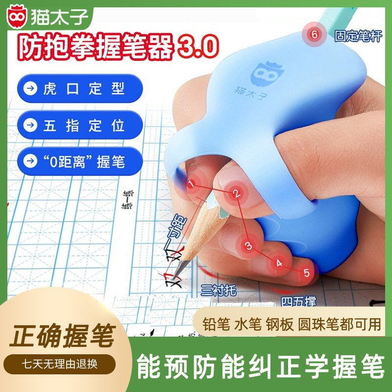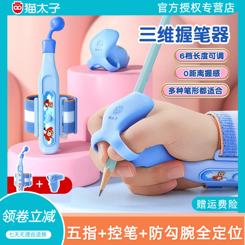 猫太子三维防勾腕握笔器套装小学生幼儿园写字姿势纠正握笔姿势矫正器控笔训练宝宝写字神器儿童握笔抓拿笔套