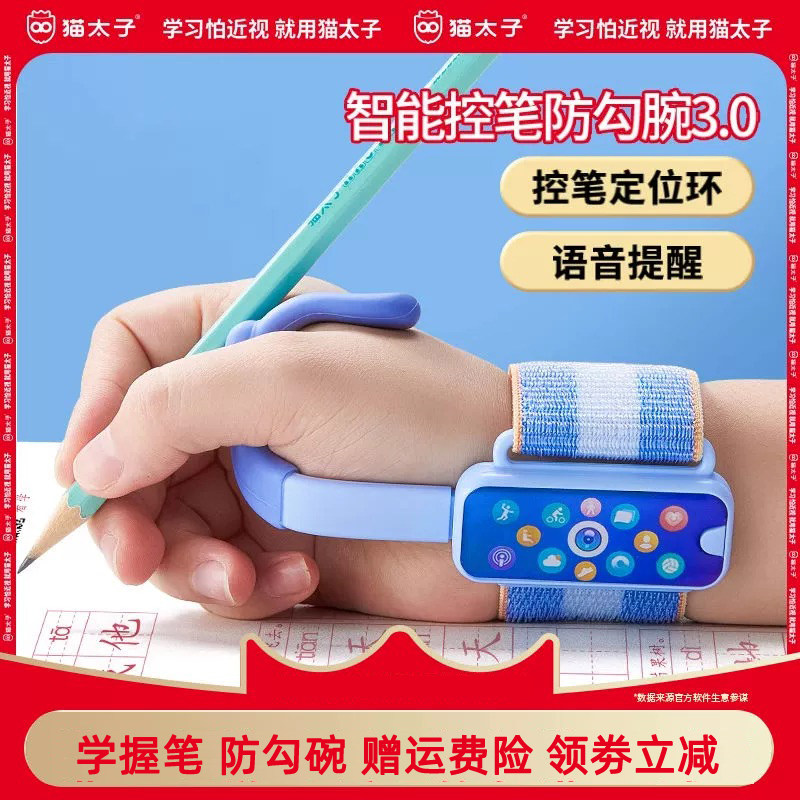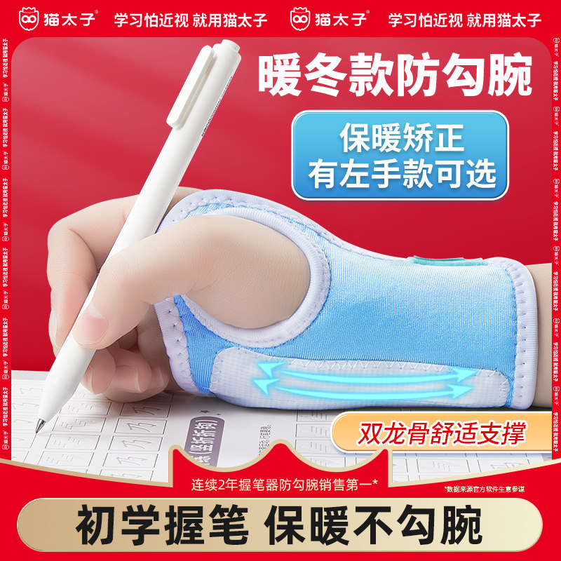 猫太子防勾腕矫正器幼儿园初学者矫正握笔写字姿势小学生防内勾钩手腕固定纠正儿童左手拿控笔训练神器握笔器