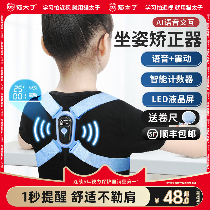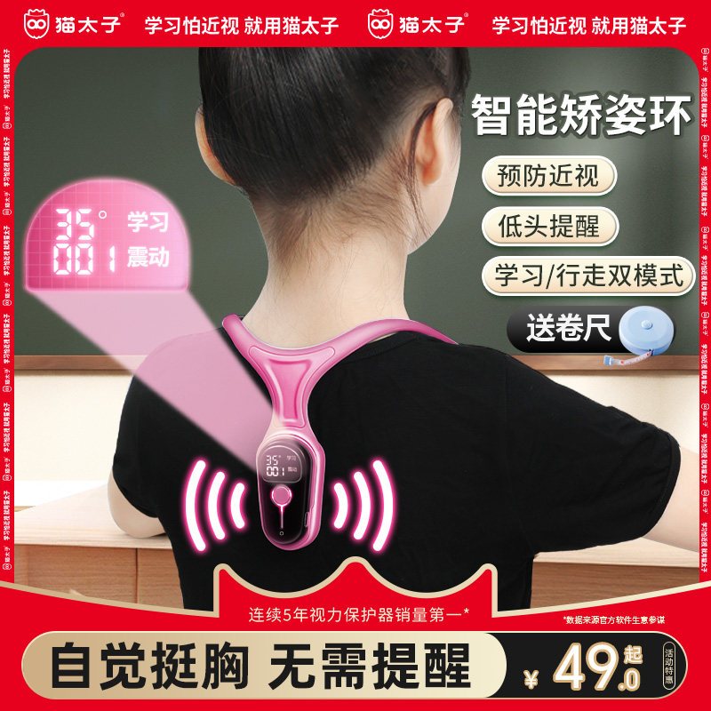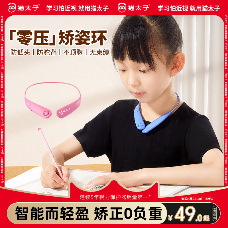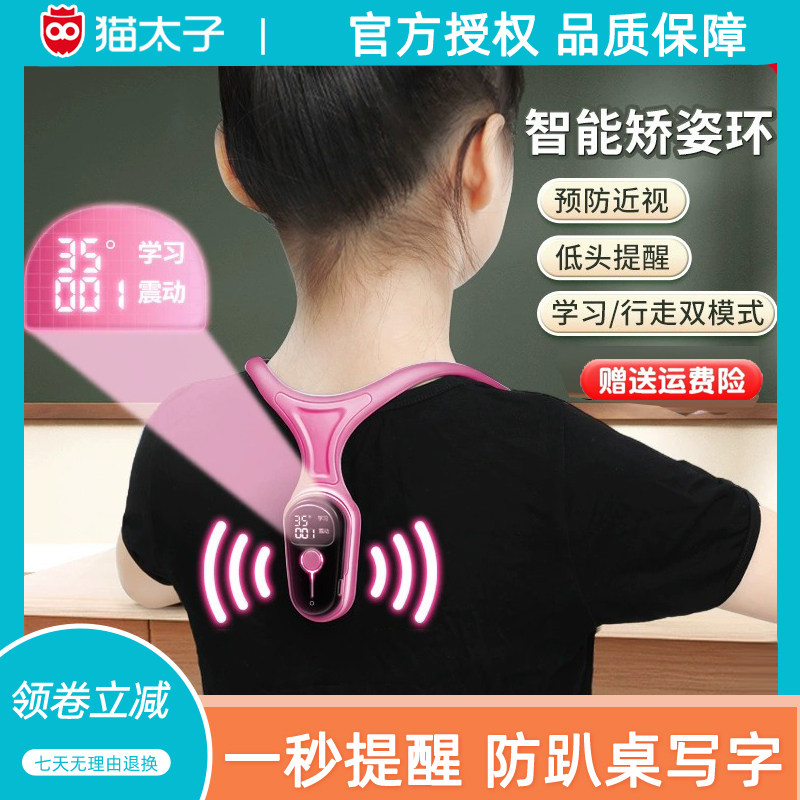 猫太子智能矫姿环防近视坐姿矫正器小学生儿童写字姿势纠正防驼背低头提醒神器作业趴桌背部护眼视力保护器仪