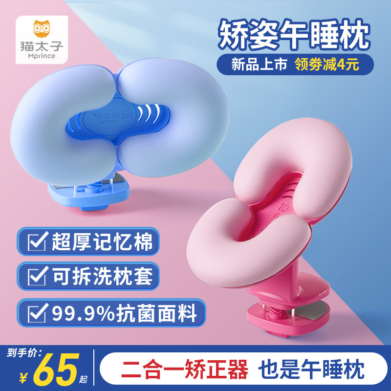 猫太子坐姿矫正器小学生趴桌午睡枕纠正写字矫正姿势儿童写作业学习护眼视力书写防低头神器矫姿午睡枕