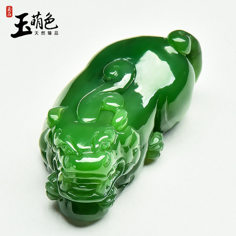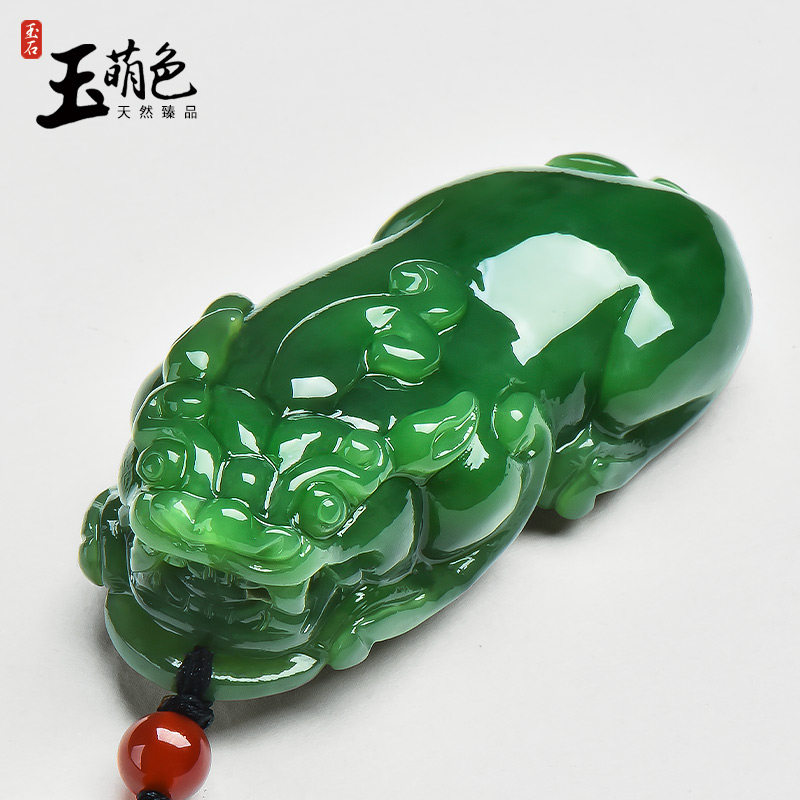 玉萌色和田玉碧玉貔貅吊坠菠菜绿瑞兽挂件玉坠左右款自选正品X019