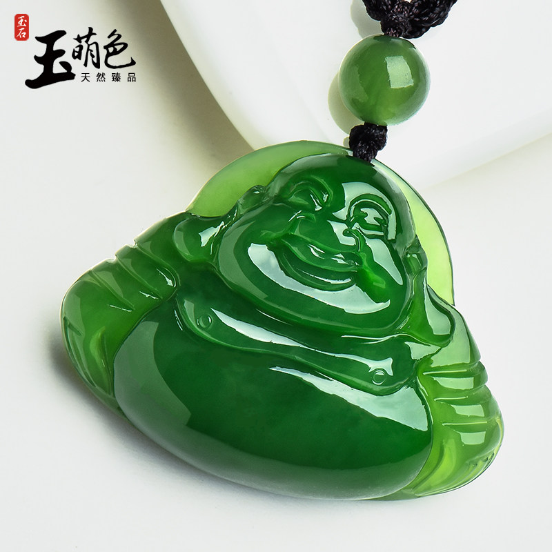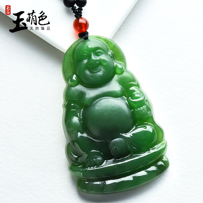 玉萌色和田玉吊坠玉佛碧玉弥勒佛挂件玉佩佛公玉坠女带证书FG052