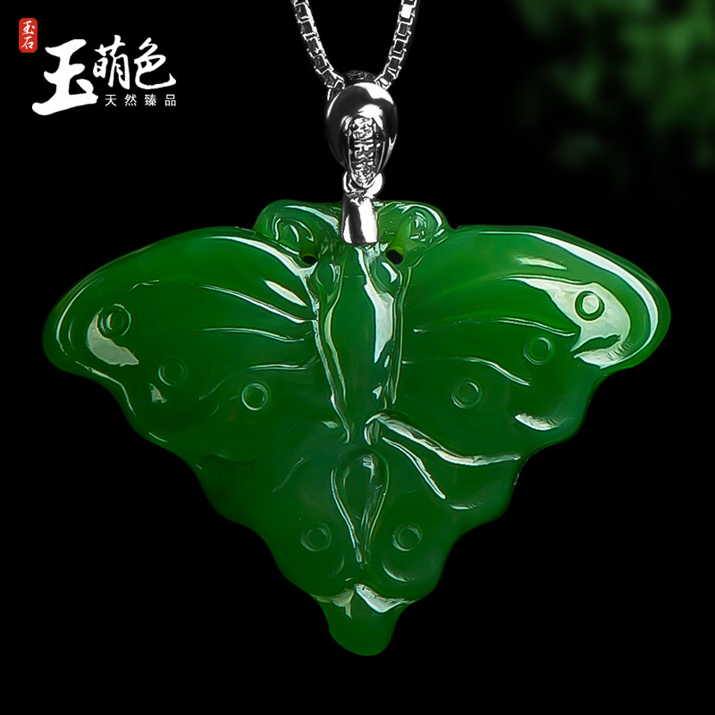 玉萌色菠菜绿碧玉吊坠玉石蝴蝶项链和田玉挂件玉坠正品Z669