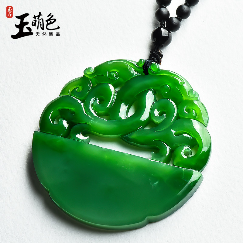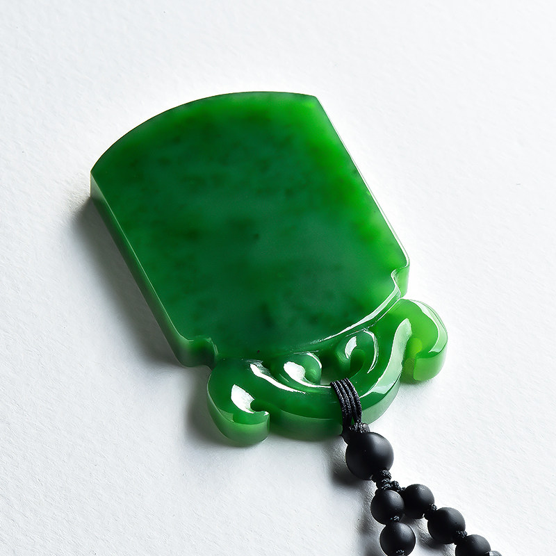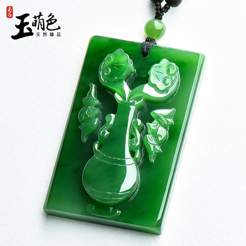 玉萌色碧玉吊坠男女无事牌和田玉菠菜绿玉牌送黑曜石珠链