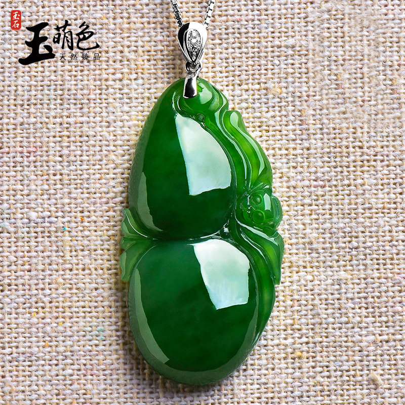 玉萌色天然碧玉吊坠女颈饰和田玉挂坠葫芦玉坠白18K金带证书Z377
