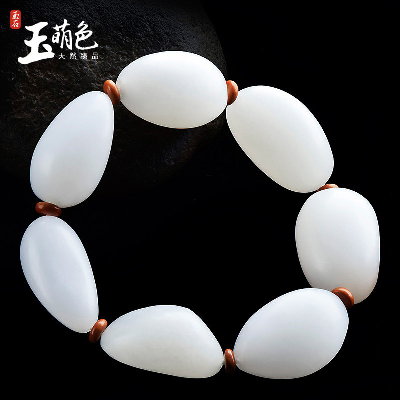 玉萌色白玉手链男女款和田玉手串羊脂白玉随型手饰正品带证L006