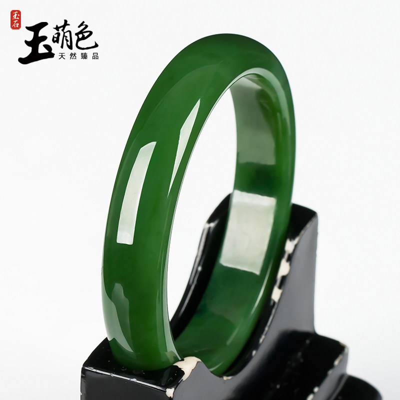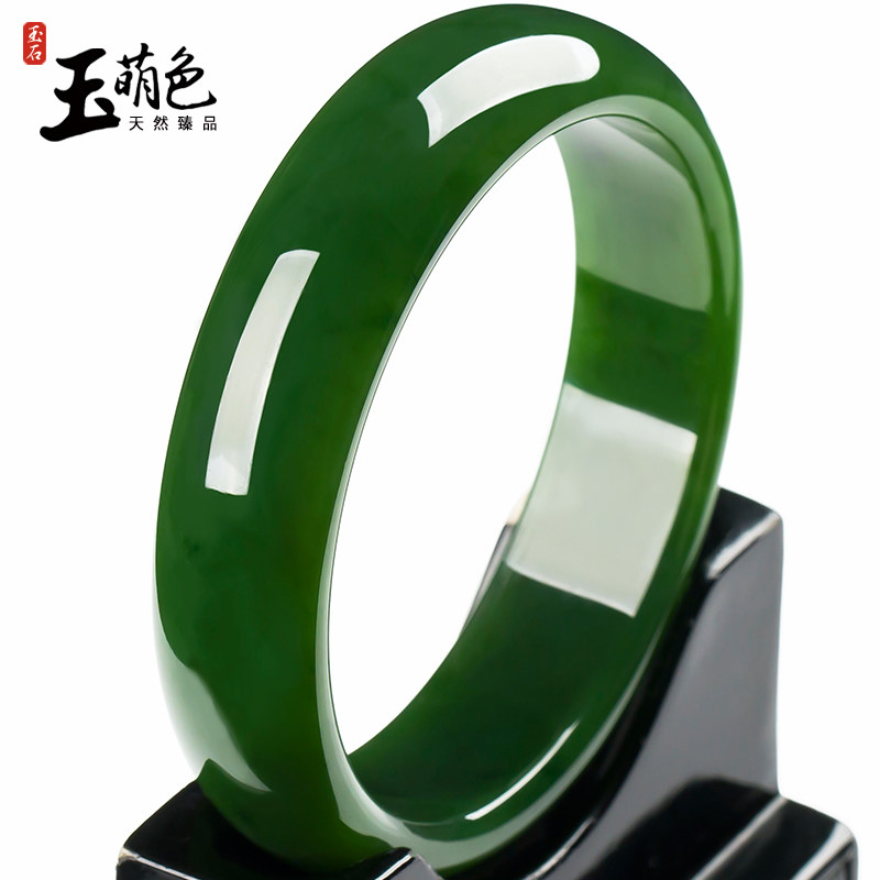 玉萌色和田玉碧玉手镯玉石玉镯子女正品玉器菠菜绿圆镯带证书