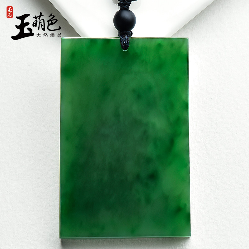 玉萌色碧玉吊坠正品和田玉无事牌挂坠菠菜绿玉牌玉石挂件018-04