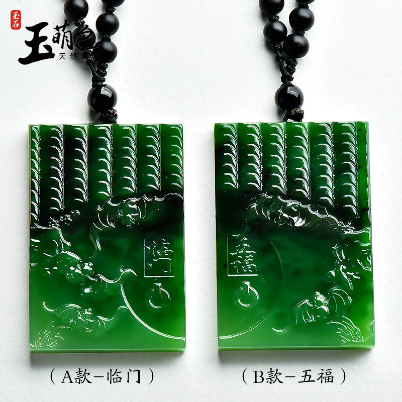 玉萌色和田玉碧玉挂坠五福临门玉牌挂件正品玉石吊坠009-14