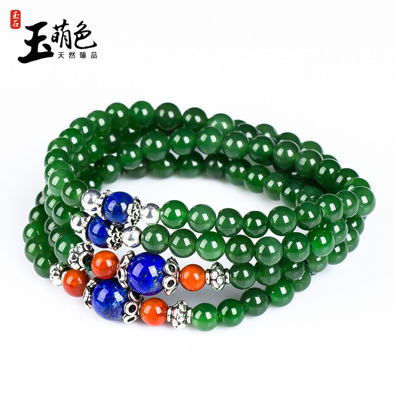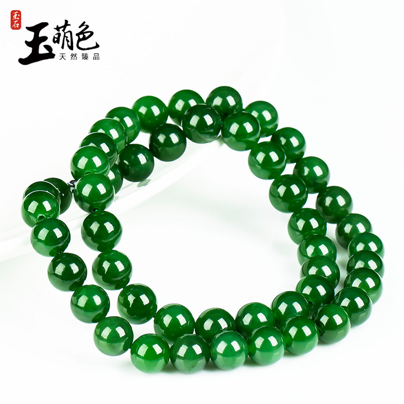 玉萌色和田玉碧玉手链念珠佛珠手串菠菜绿项链正品玉石006-02