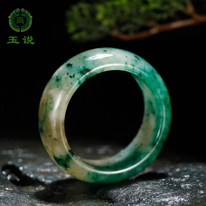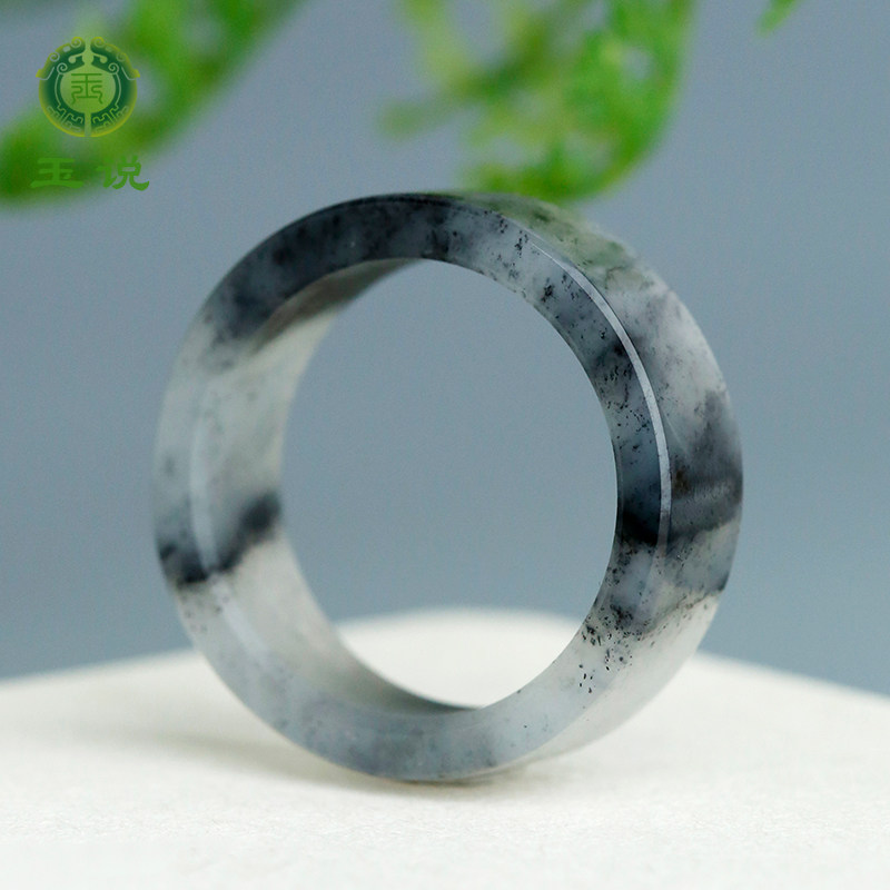 玉说和田玉指环男款玉戒指水墨青花籽料玉石手饰内径18mm附证书