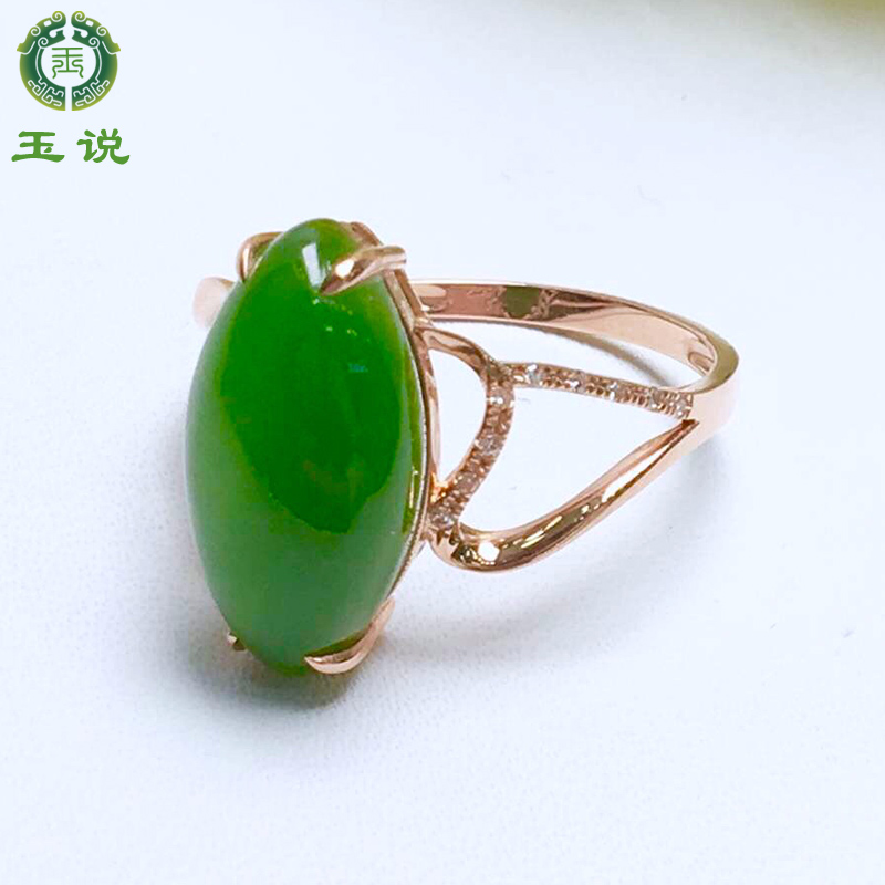 和田玉碧玉戒指女 18k金镶玉戒指环玉石玉器手饰品界面8*16MMKJ