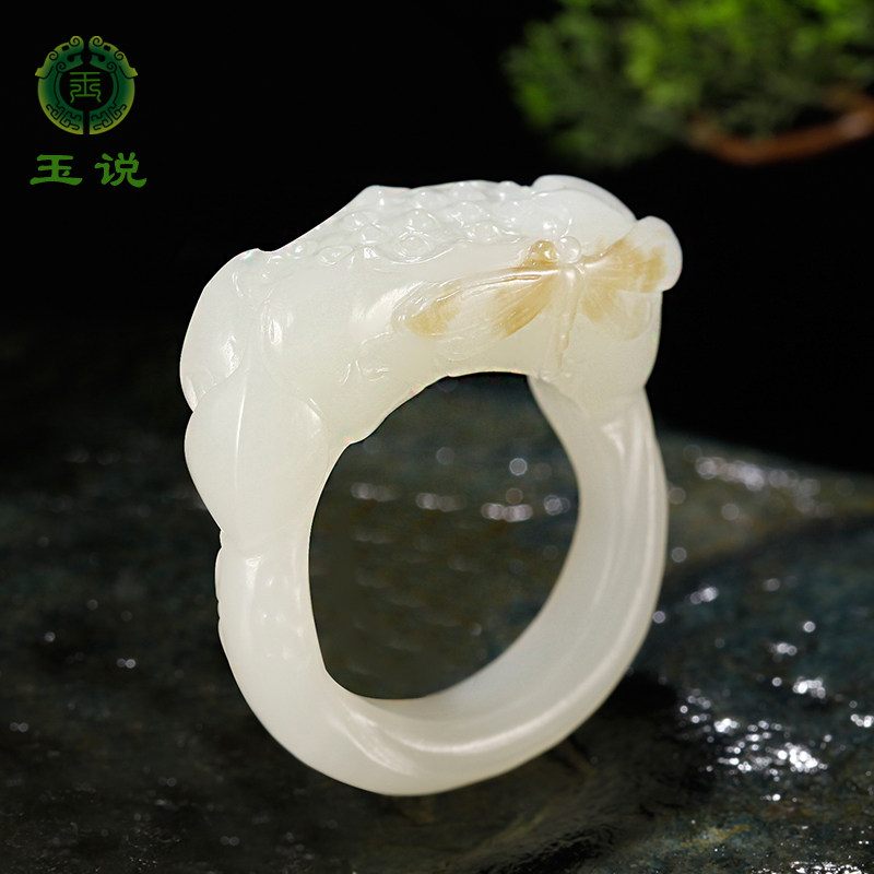 玉说和田玉糖白玉莲花戒指女款玉石指环蜻蜓莲蓬亭亭玉立内径19mm