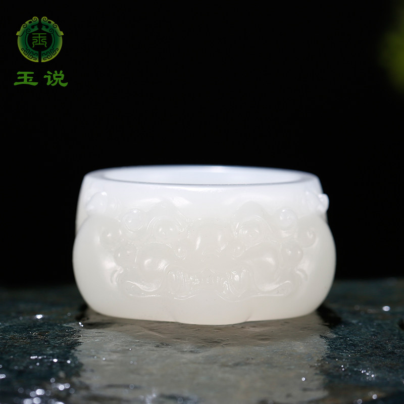 玉说和田玉羊脂白玉兽面扳指男款玉石饕餮戒指手饰附证书内径20mm
