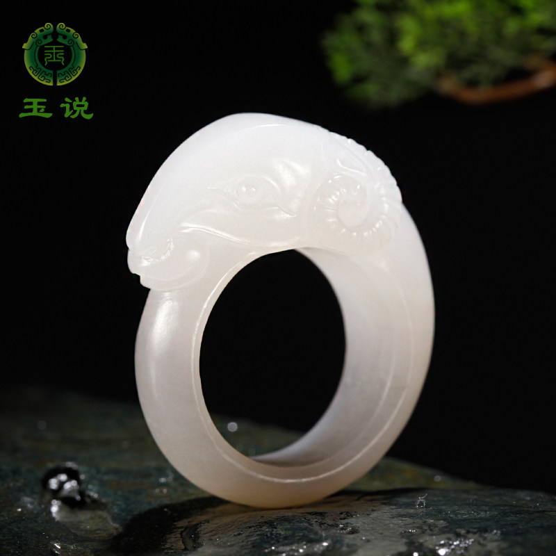 玉说和田玉狮子头戒指吊坠男款玉扳指王者风范富贵玉手饰内径21mm