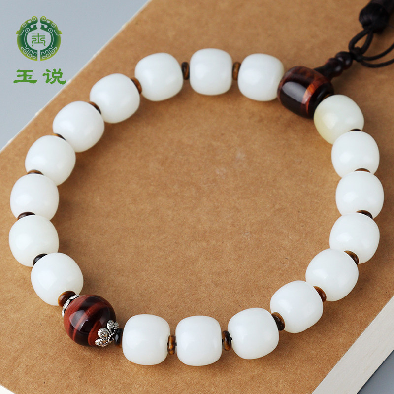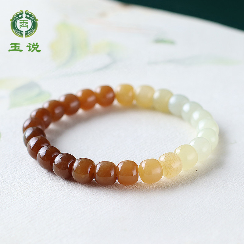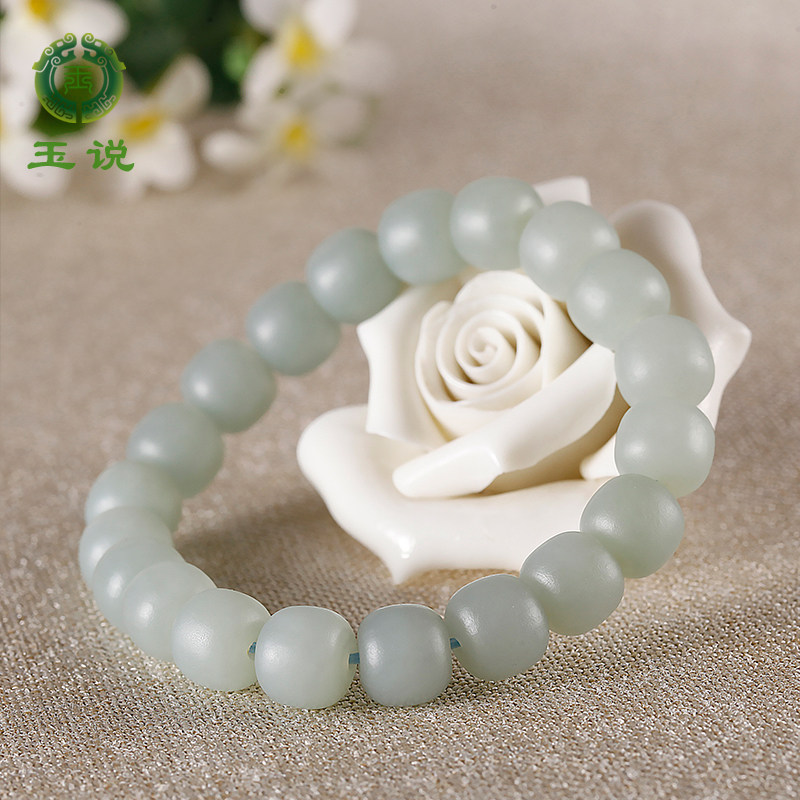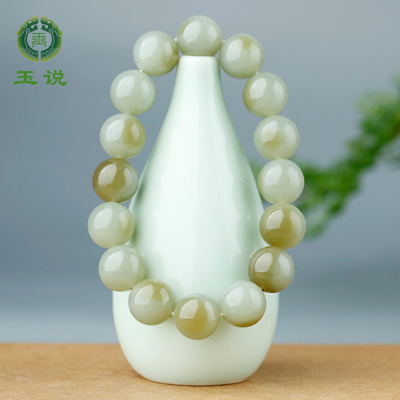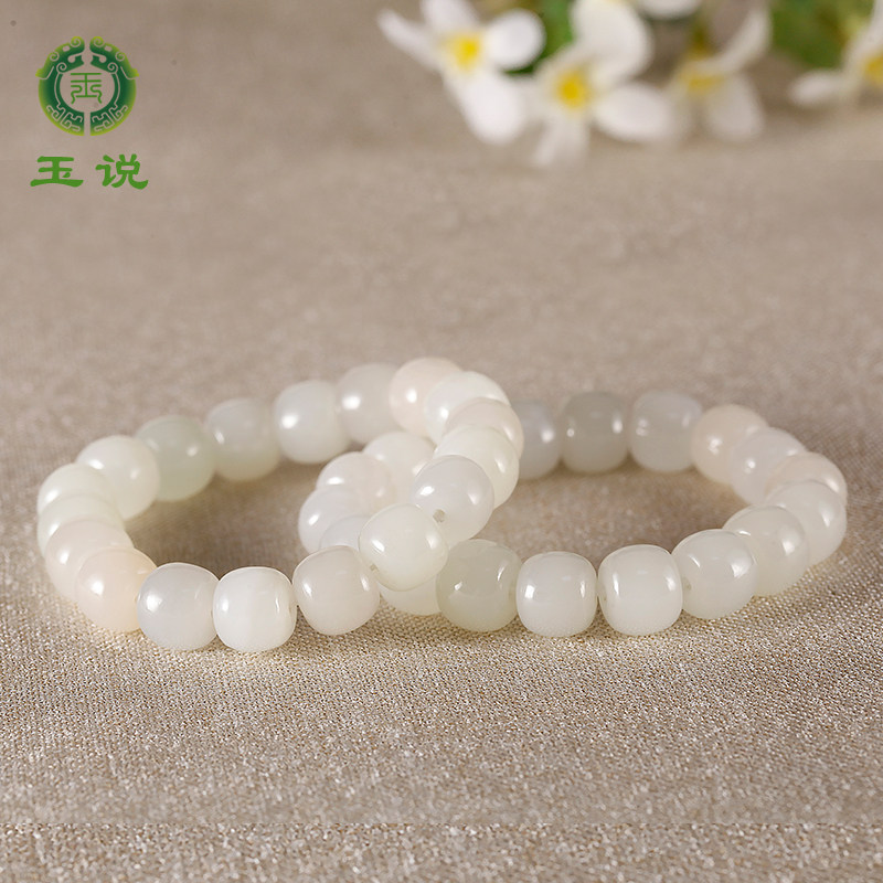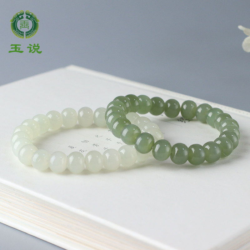 玉说和田玉手串女款油青脂白渐变玉石手饰老型珠单珠约9*10mm手链