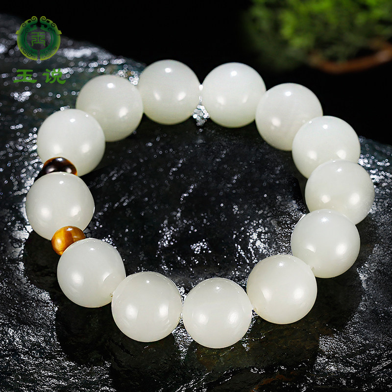 玉说和田玉羊脂白玉手串男士15mm16mm玉珠男女款10mm圆珠18mm手链