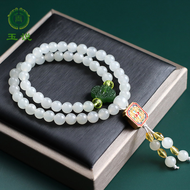 玉说和田玉羊脂白玉多圈手串女款玉石圆珠手链项链单颗圆珠约6mm