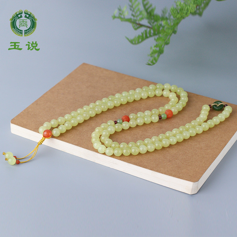 玉说和田玉黄玉多圈手链男女款玉石珠链项链圆满念珠鸡油黄附证书