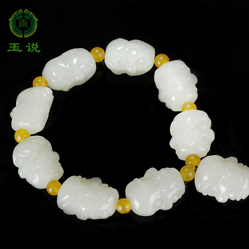 玉说和田玉黄玉罗汉手串男士款玉石双面十八罗汉佛像玉把玩件手链