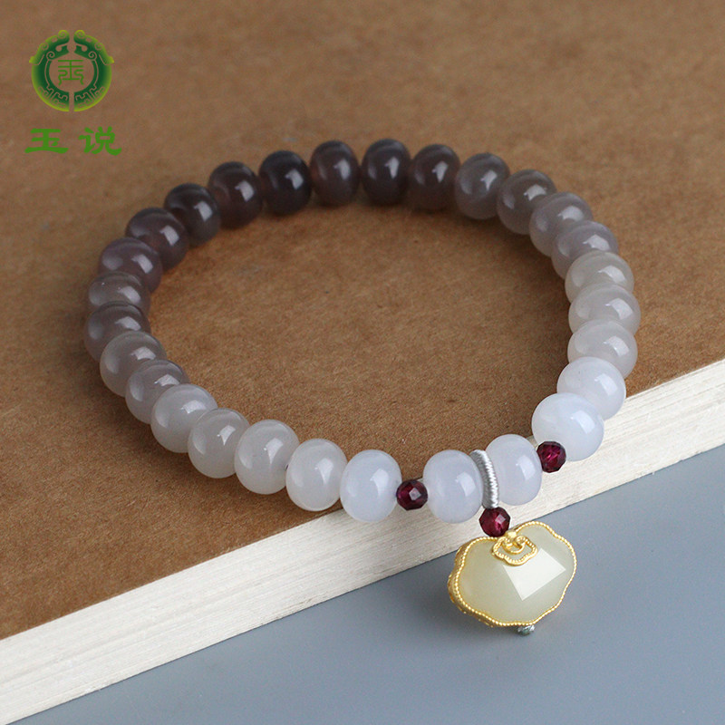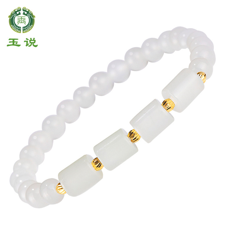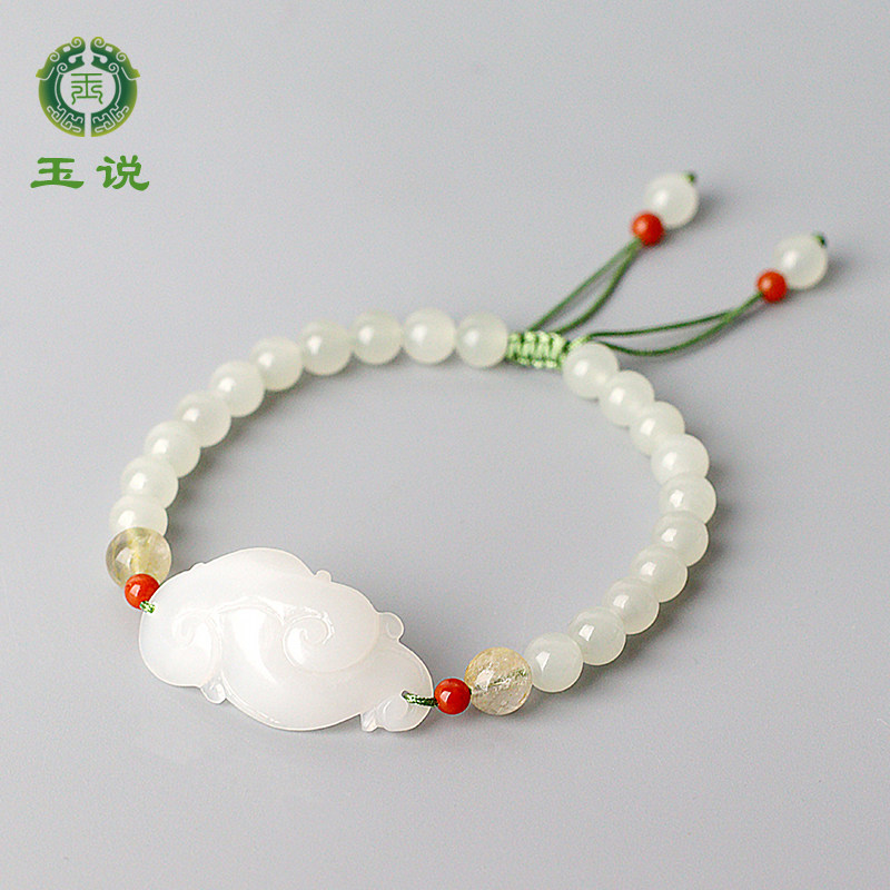 玉说和田玉晴水手串女款玉石手链s925银饰青白玉圆满富贵玉手饰